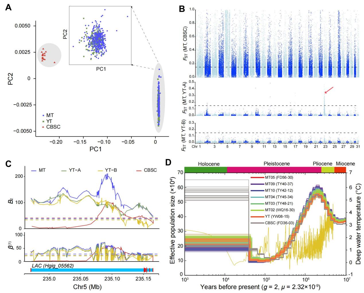 研究結果顯示H. gigas的有效種群在約100萬年前經歷了一次急劇下降,這與更新世深海溫度的大幅波動高度吻合。經過遺傳瓶頸后,鉤蝦群體又經歷了種群擴張。這一結果說明,更新世時期大的冰期-間冰期氣候變化可能不僅造成了陸地動物的大規模滅絕,而且也深刻影響了深海甚至深淵動物。